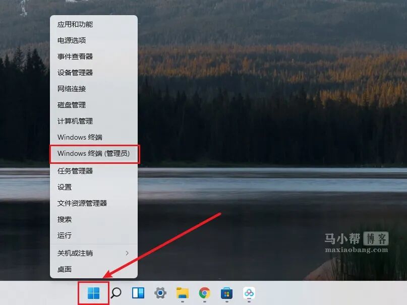 2,在开始菜单上右键,选择Windows终端(管理员)。